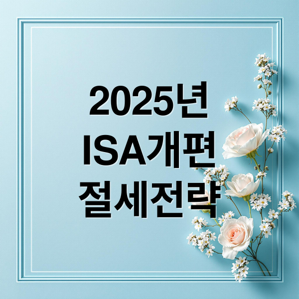 안녕하세요! 재테크에 관심 있는 분들이라면 2025년 ISA 개편 소식에 귀 기울이고 계실 텐데요. 개인종합자산관리계좌, 즉 ISA는 세금 혜택과 함께 자산을 효율적으로 관리할 수 있는 매력적인 금융 상품이에요. 특히 2025년에는 ISA 제도가 대폭 개편되면서 더욱 강력한 절세 효과와 함께 자산 증식의 기회를 제공할 것으로 기대됩니다. 이번 글에서는 2025년 ISA 개편의 핵심 내용을 자세히 살펴보고, 이를 활용한 최적 투자 전략까지 꼼꼼하게 알려드릴게요. 똑똑한 ISA 활용으로 여러분의 자산을 더욱 풍성하게 만들어보세요!